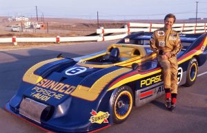 Mark Donohue, o eterno fiel escudeiro de Roger Penske. Que, abaixo, em pose resignada, assina com feições de adeus um dos 963 derradeiros da marca alemã que tinha levado em busca de mais uma glória para sua prateleira.